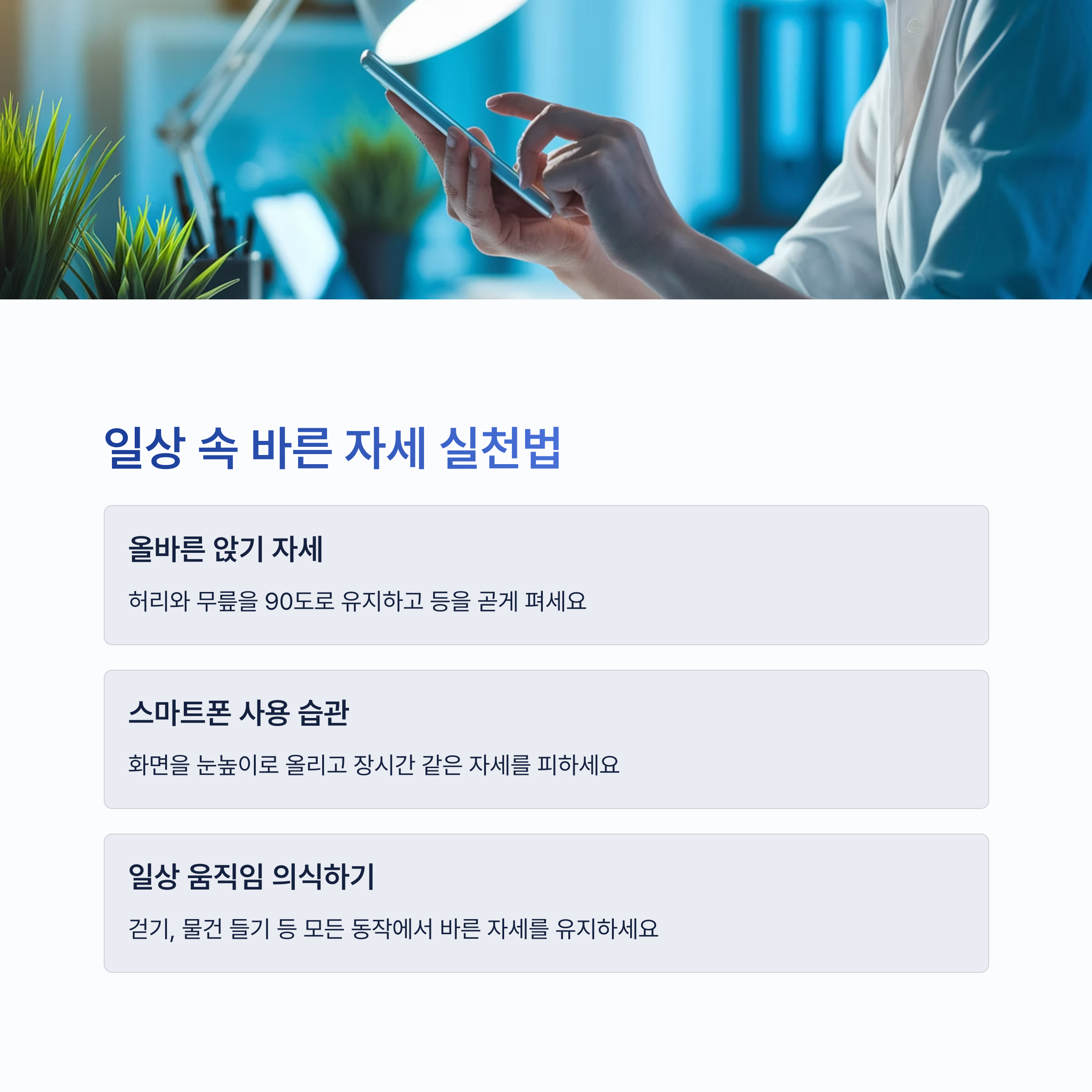 운동도 중요하지만, 매일 생활 속에서 자세를 관리하는 것이 더 중요해요. 아무리 좋은 운동을 해도 평소 자세가 나쁘면 효과를 보기 어렵거든요. 다음은 일상에서 바른 자세를 유지하는 데 도움이 되는 팁들입니다.