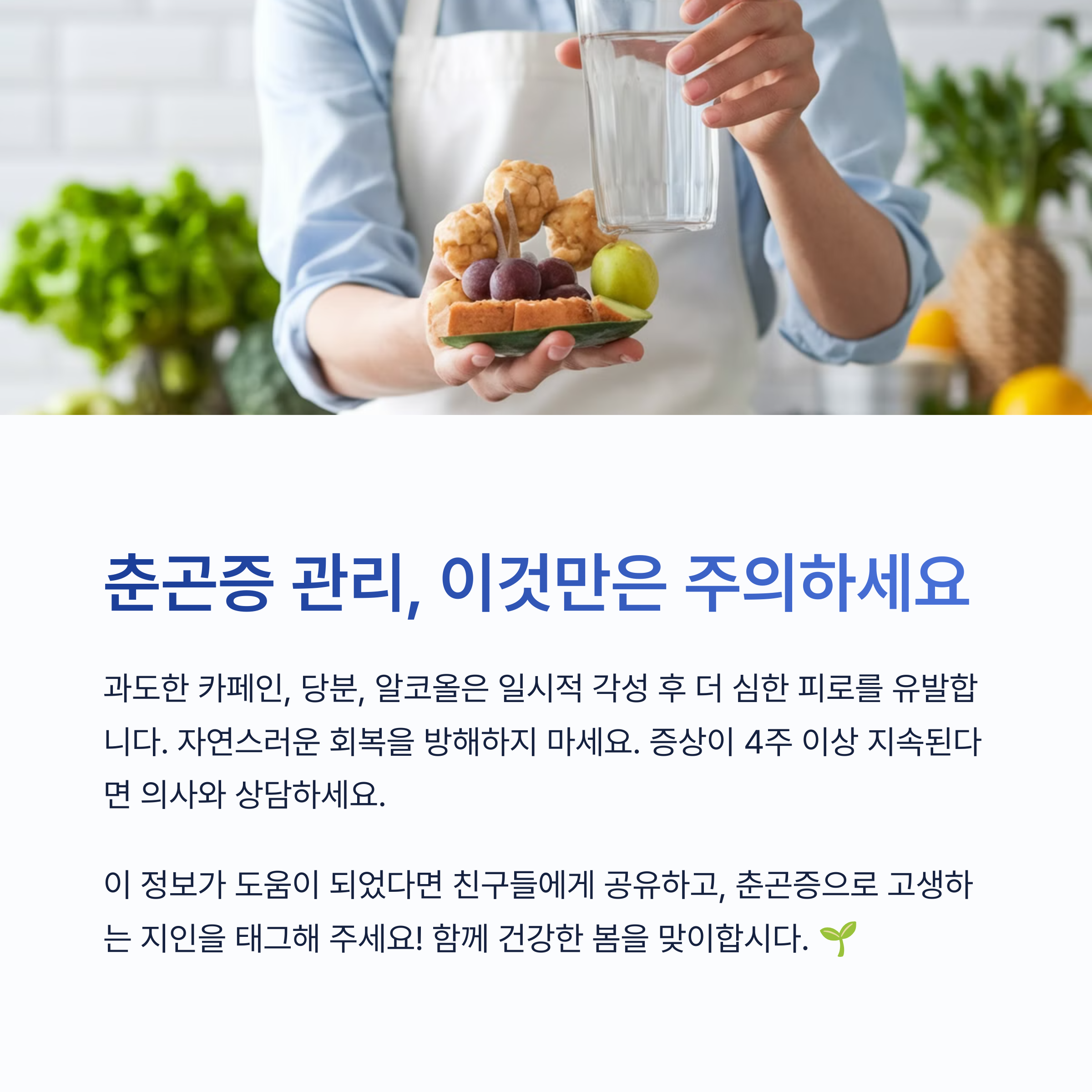 "봄은 자연의 새로운 시작이듯, 우리에게도 새로운 활력을 불어넣는 계절입니다. 춘곤증이라는 작은 장애물을 현명하게 극복하고 더 건강한 생활을 시작해보세요."